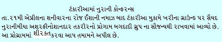 Bashir Suleman Jet has passed away at Vantarsa village, inna lillahe wainna ilayhe rajeun. His namaj-e-janaja will held at Vantarsa village after Isha Prayer.