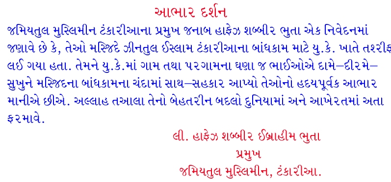 Jashn-e-Shabina celebrated in Jama Masjid Tankaria on 28 & 29th night Taravih.